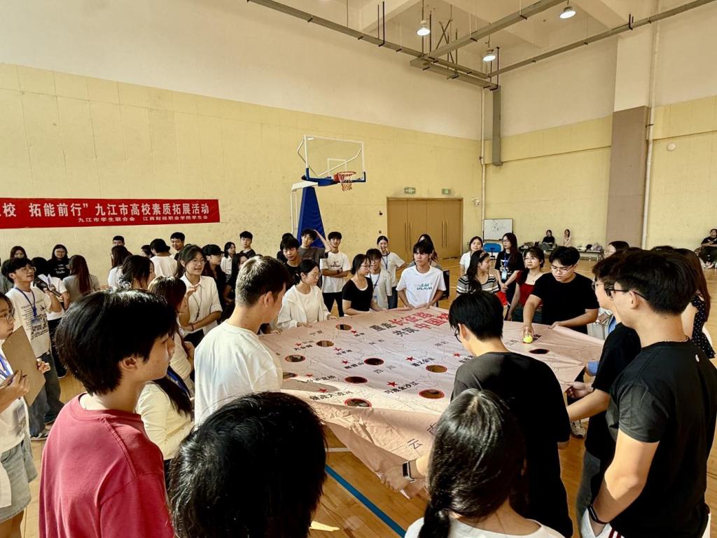为促进九江市高校交流互鉴,搭建协同共进的成长平台,9月28日下午,由我校学生会策划并承办的“聚智五校,拓能前行”九江市高校素质拓展活动在八里湖校区成功举行。来自九江市五所高校的50名学生代表齐聚我校,在合作与竞技中汇聚智慧,于挑战与欢笑中拓展能力,共同缔造了一段难忘的青春记忆。
