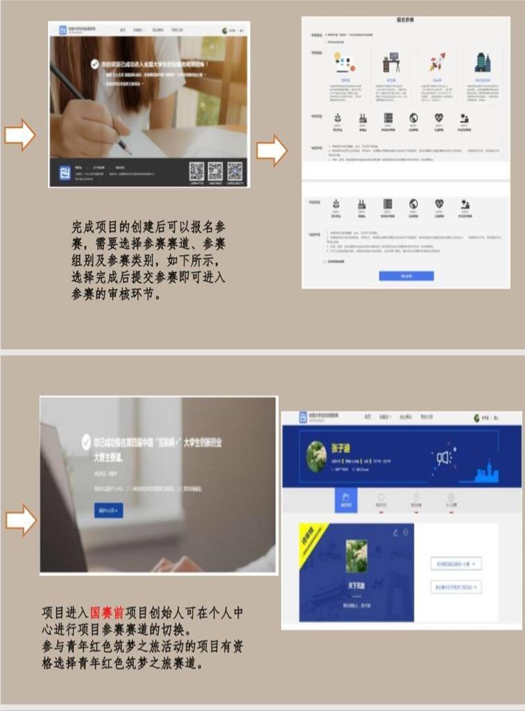 各二级学院团总支将本通知转发至各班级团支部,鼓励在校学生和创业校友(毕业5年内校友)积极组织团队参加比赛。鼓励教师指导学生参赛。参赛团队须于6月20日前通过登录“http://jy.jxedu.gov.cn”点击链接页进入,或直接进入“https://cy.ncss.org.cn/”进行网络报名。不同组别的参赛学生需根据报名系统的提示提交相应的报名材料。未在竞赛官网报名的参赛团队将无法获得参赛资格(报名程序详见附件2)。